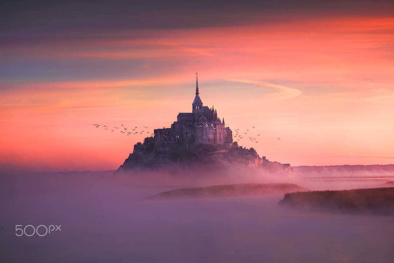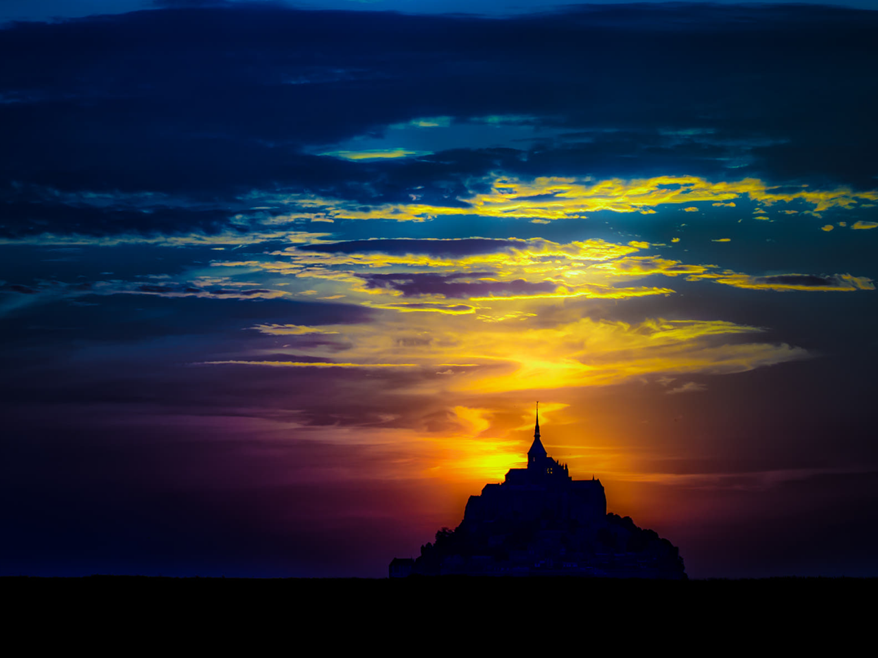 MONT-SAINT-MICHEL, located just at the 'border' between Brittany and Normandy regions (and 50 minutes drive from our house), famous for its abbey, and the high & low tides which flow at the speed of a galloping horse.