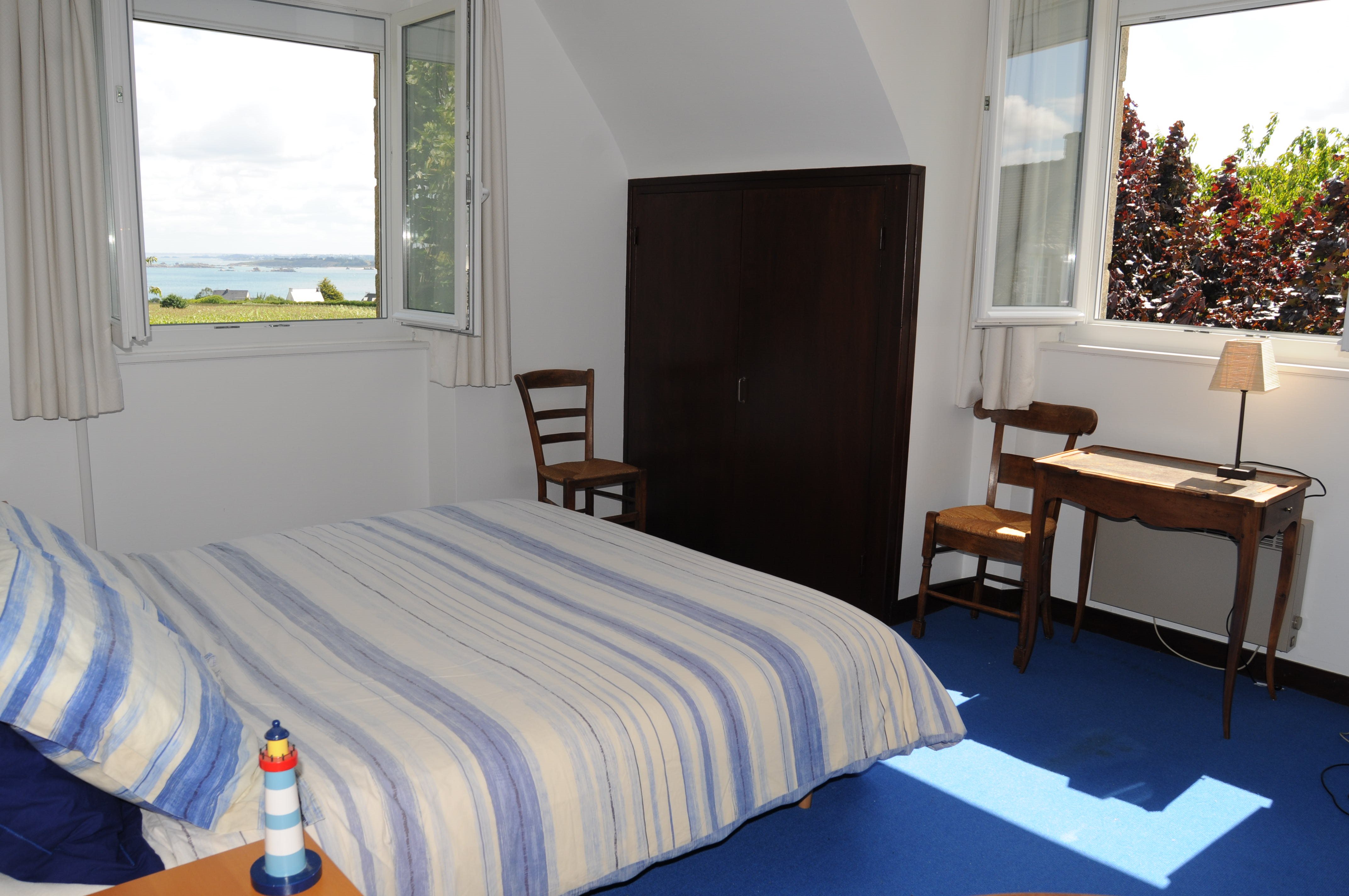 SAME BEDROOM - Double Bed - with SEA VIEW (left window) - SURFACE: 12 square meters, 130 square feet - Photo B. Louyot