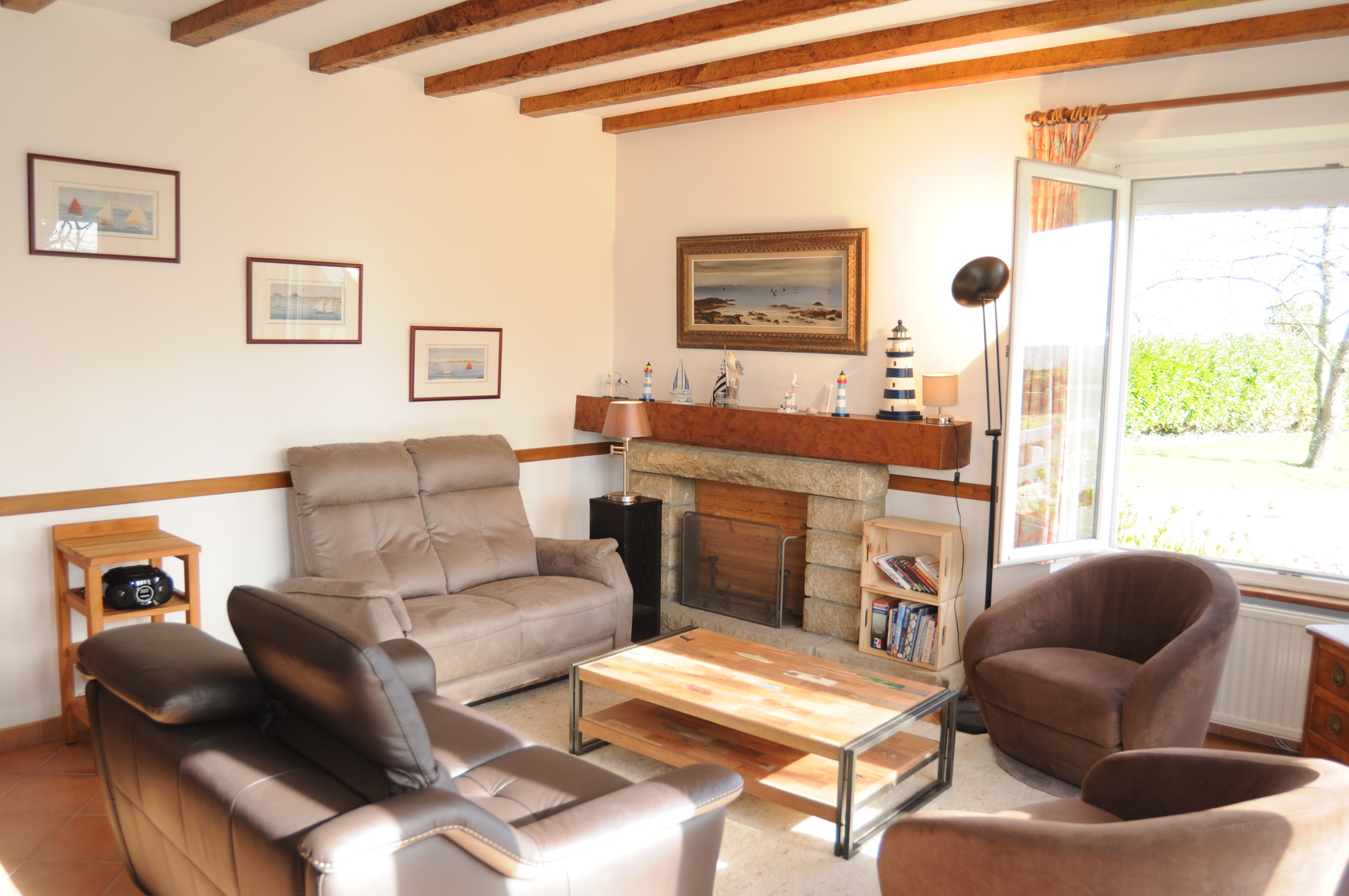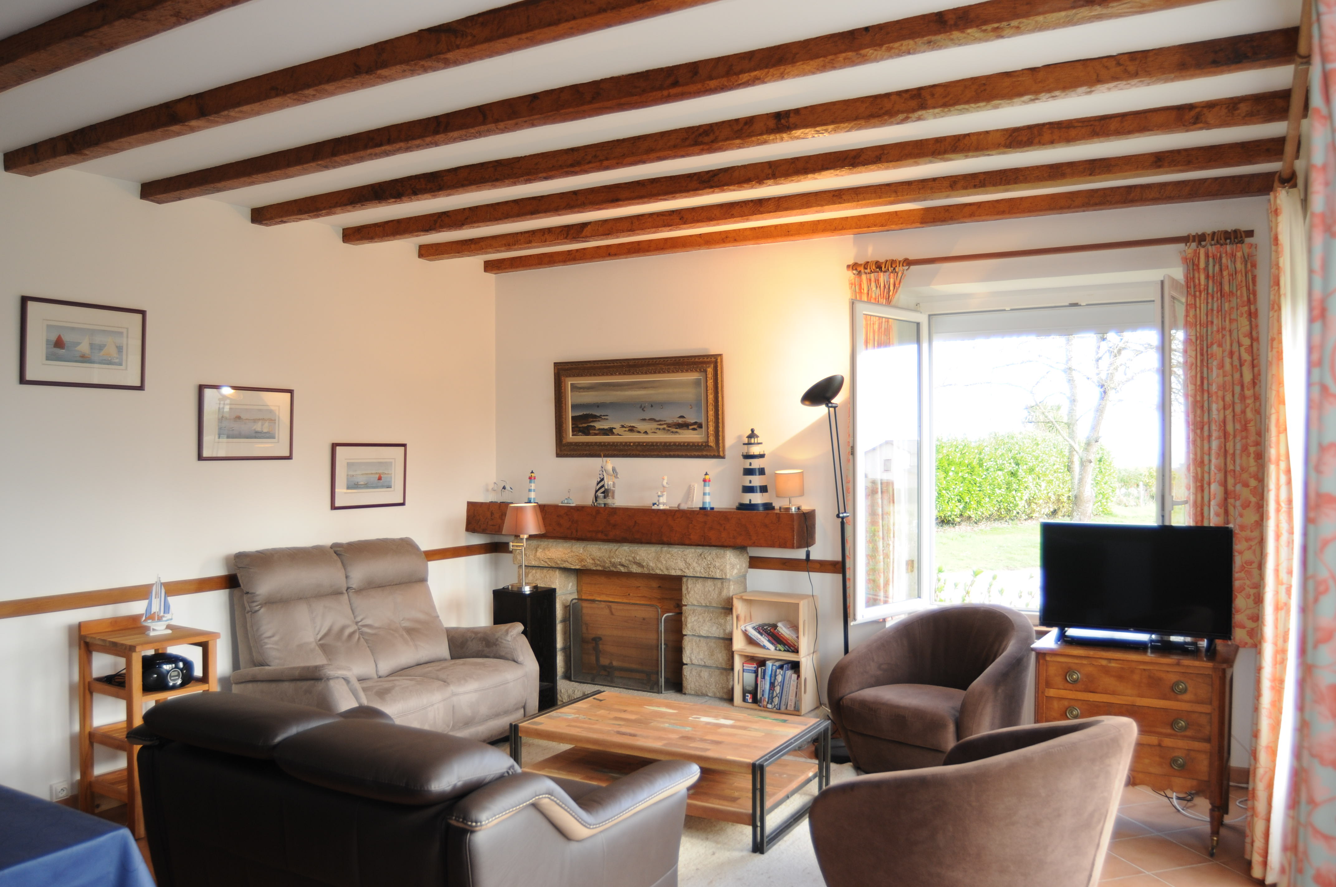 LIVING ROOM, with wooden beams & Sea View (2 windows) - Photo B. Louyot