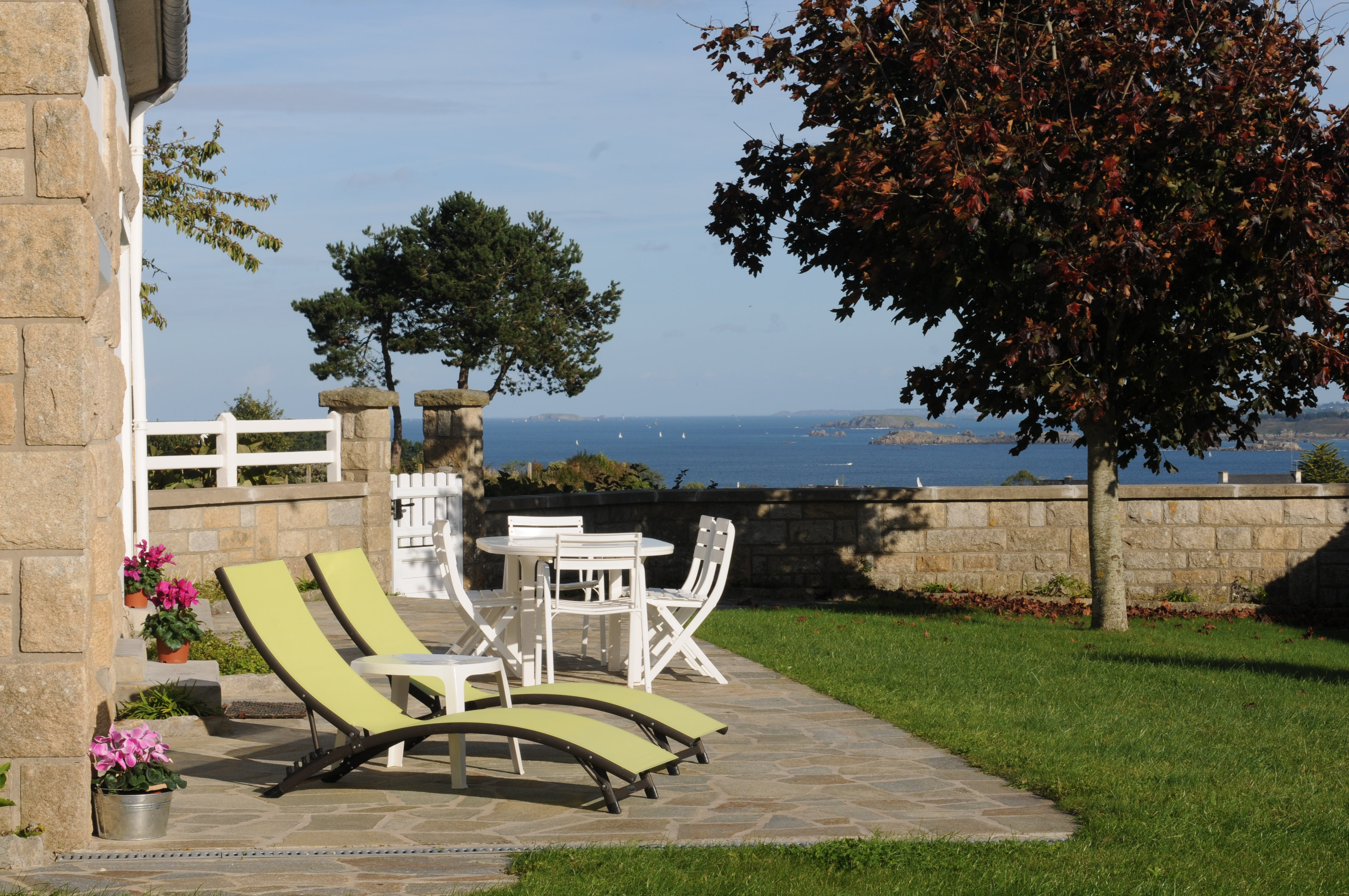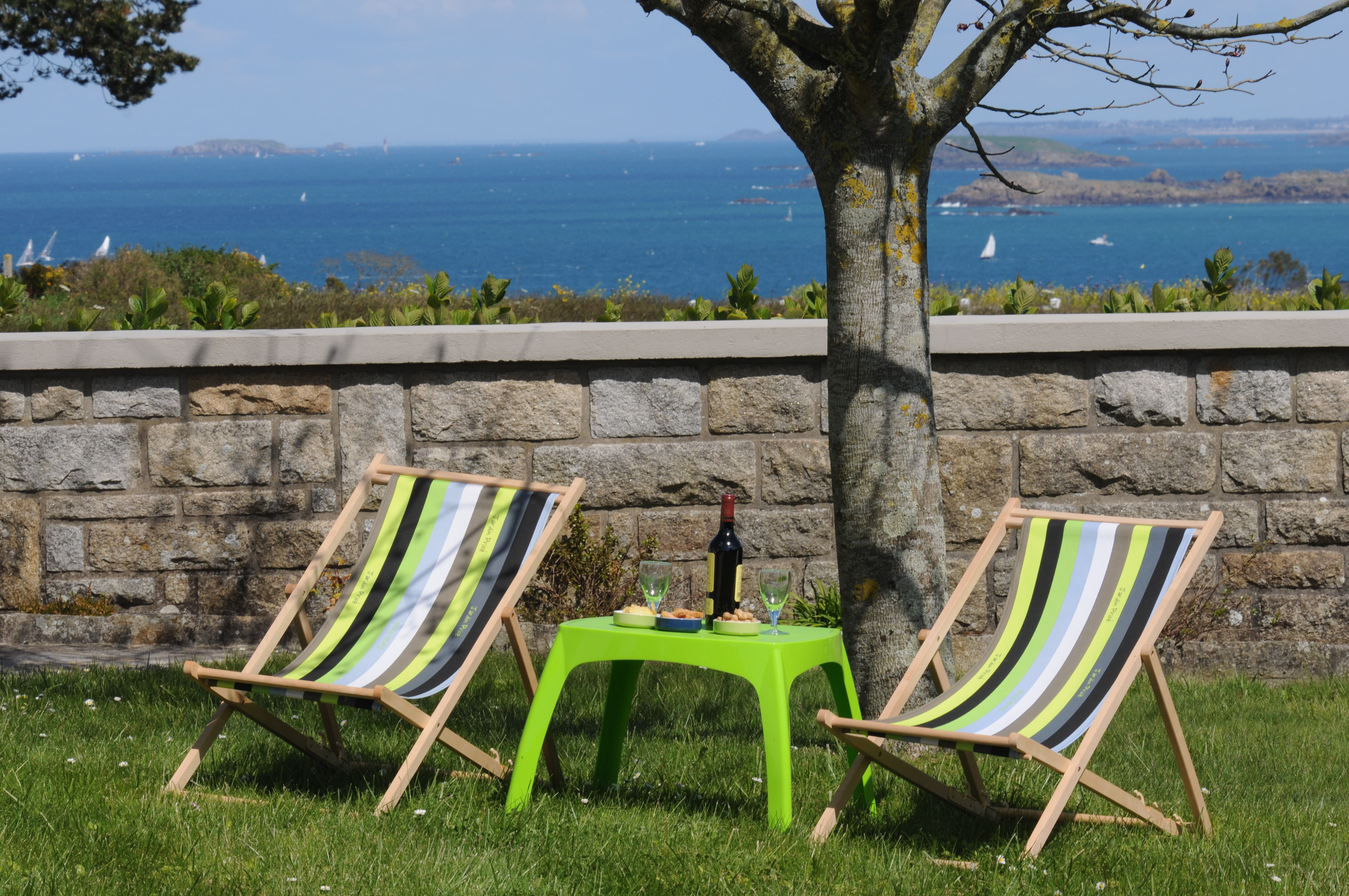 Panoramic open SEA VIEW from the house, and from those 3 lounge chairs - Photo B. Louyot