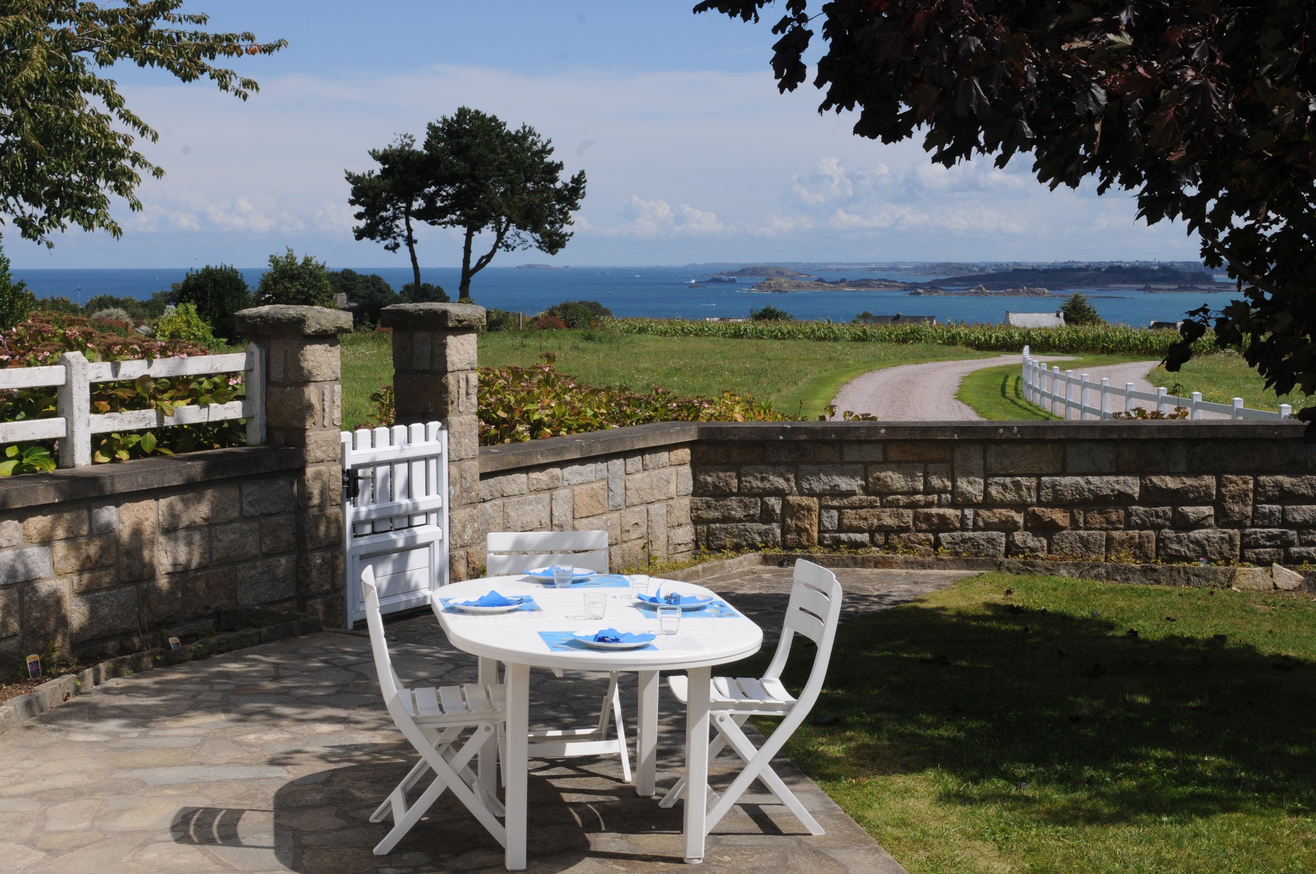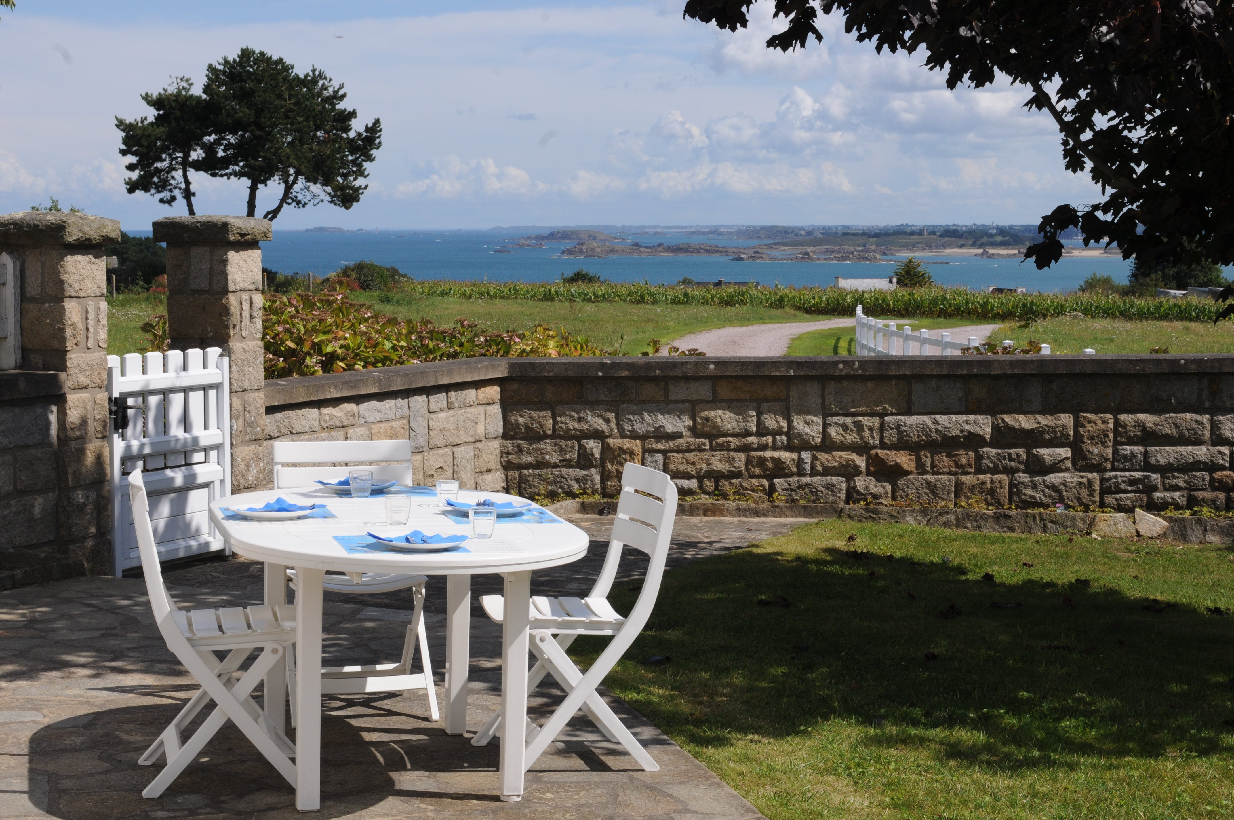 YOUR MEALS with great SEA VIEW, outside ON THE TERRACE. Our private driveway, no traffic, VERY QUIET - Photo B. Louyot